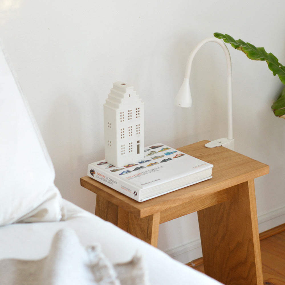 Recomendamos ubicar el producto en un lugar sin luz solar directa y limpiarlo con un paño seco una vez por semana. Si es posible, cubra con cera de acabado de madera Osmo de color transparente cada dos años para perpetuar la resistencia a la suciedad, prevenir el desgaste y repeler el agua.